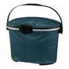 Wasserdichter Fahrrad-Lenkerkorb mit Deckelverschluss; mittige Deckelfixierung erlaubt schnellen Zugriff auf Inhalt; stabiler Aluminiumrahmen; komfortabler, verstellbarer Tragegriff; PU-beschichtetes Gewebe; Innentasche mit Reißverschluss; Korb steht selbstständig durch Innenversteifung; stabile Abstellfüße; Reflektor; maximale Zuladung 5 kg.